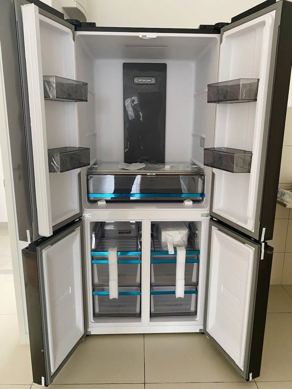 Simplify kitchen life with the spacious PureFresh FDR 700, a four-door fridge featuring an accessible top fridge, bottom freezer, and expansive shelves.